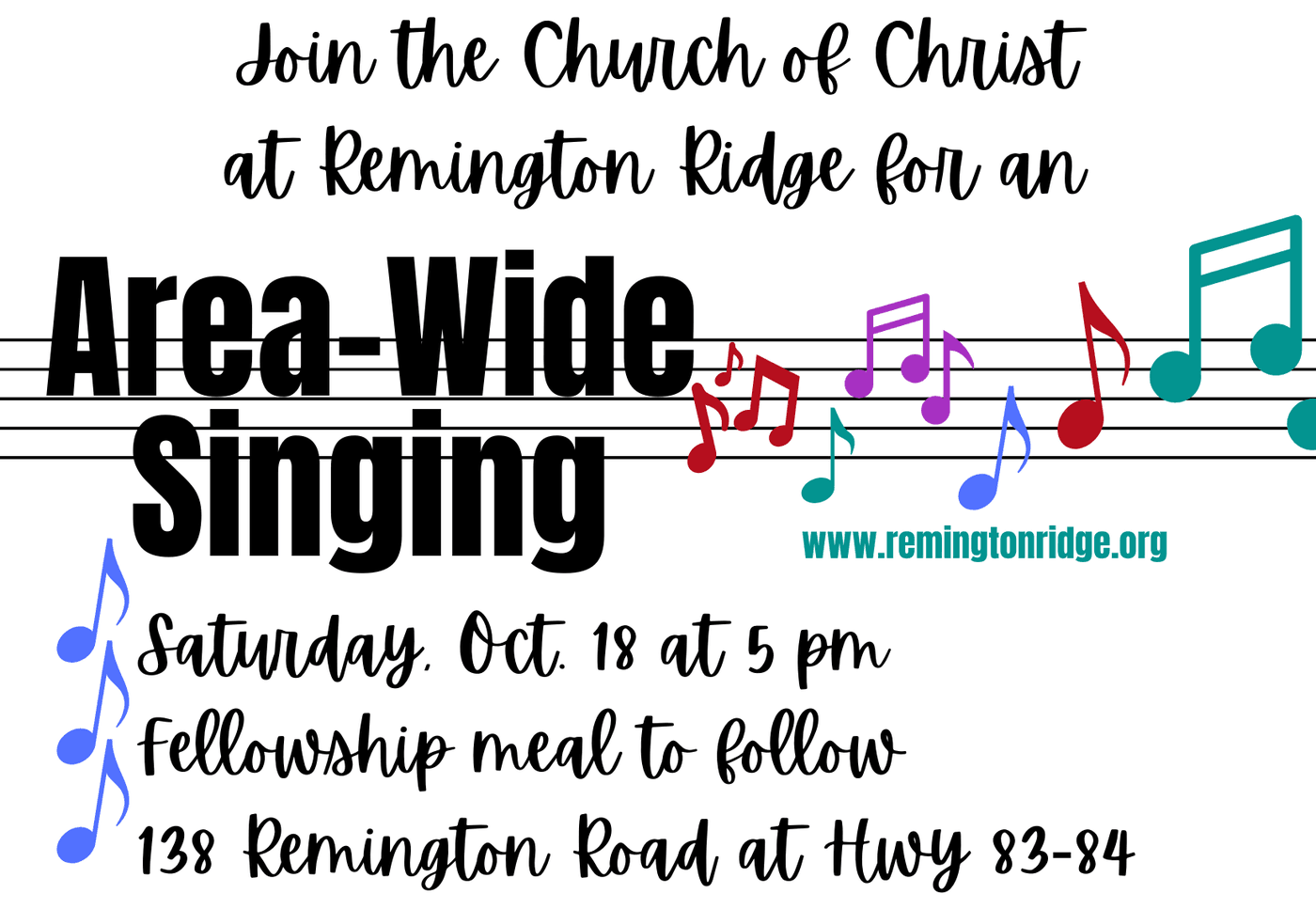 Saturday, Oct. 18 at 5 p.m. Fellowship meal to follow.
